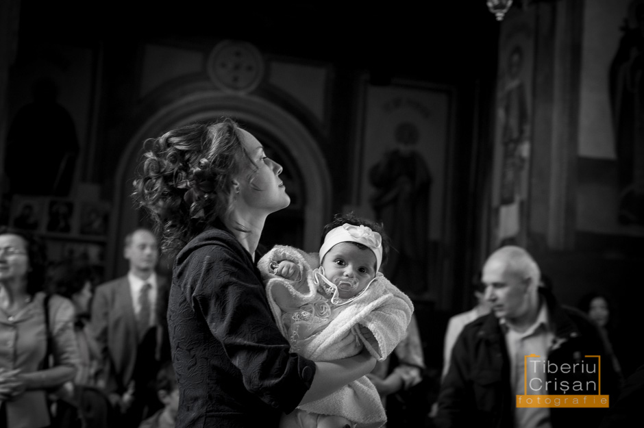 Botezul Smarandei s-a petrecut in conditii ideale – vreme frumoasa, soare, o biserica cu lumina minunata si multe zambete. M-am bucurat sa vad ca parintii copilei cu ochi mari si rotunzi – Ana-Maria si Catalin – au ramas la fel de veseli ca-n ziua in care se casatoreau (iata imagini de la cununia lor civila aici).